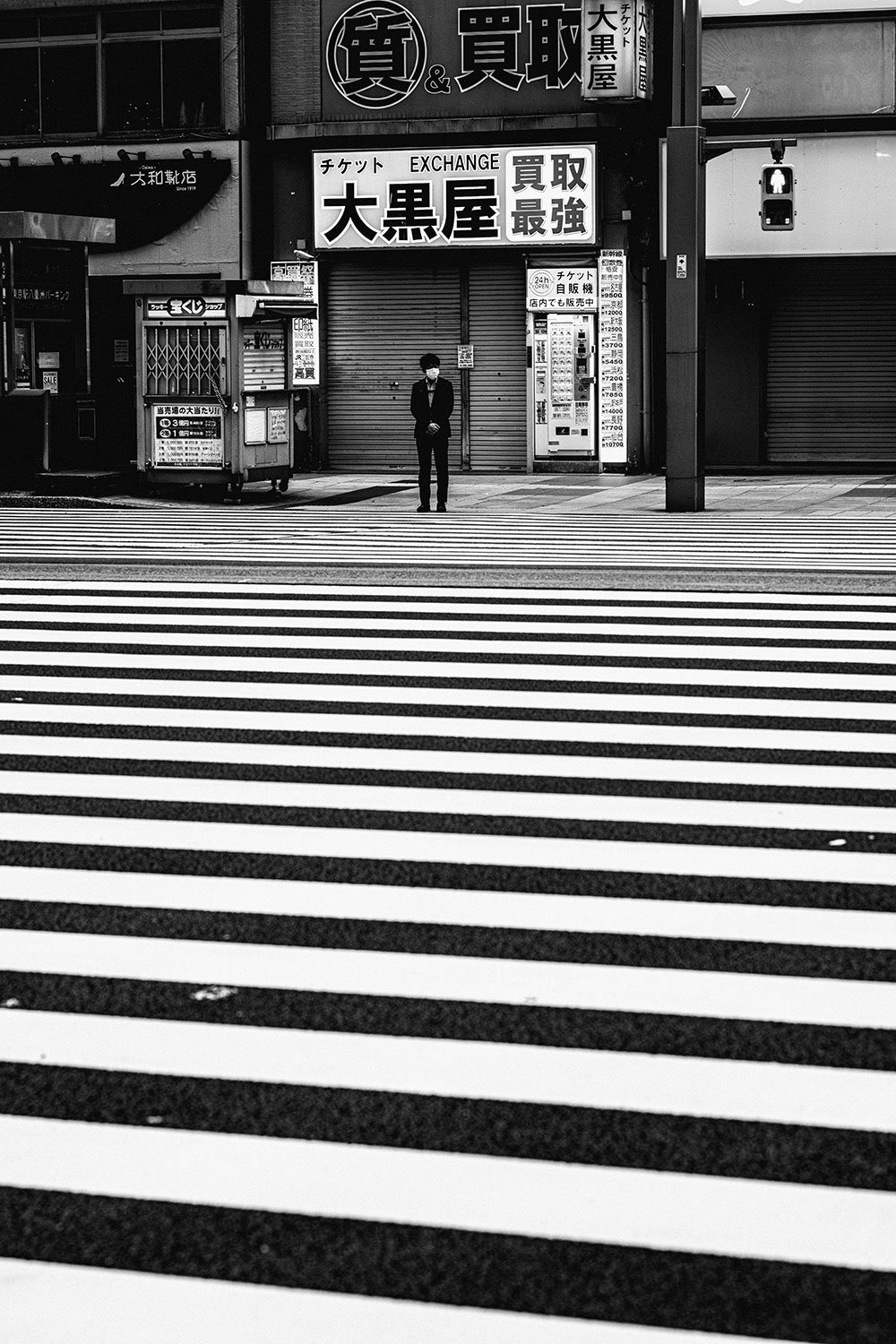 Tokyo, filmic in any weather, has been skipping channels. One day it snowed and was dark at noon. For three days in a row, the wind blew at 30 kilometres per hour and skittered dead leaves in through the window. Just once, in bright sunlight, a maintenance worker in a mask and overalls climbed up onto the water tower on the building opposite and balanced ten storeys up without a harness. Unable to leave the apartment, this is all I can shoot.