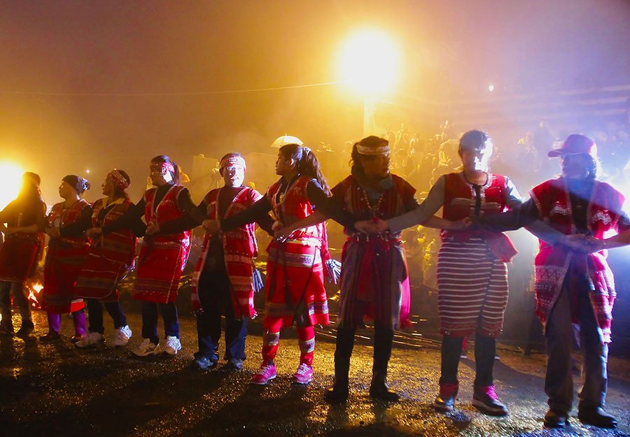 Amid this raw natural beauty are clues of cultures starkly distinct from Taiwan’s Han Chinese majority. The presence of the Atayal and Saisiyat peoples—two of Taiwan’s sixteen officially recognised Indigenous groups—is evident: mosaic murals and roadside effigies of people pounding millet, transporting baskets brimful of vegetables atop their heads or shielding their eyes from the sun with one hand while clutching the hilts of sheathed knives with the other. Clad in intricately patterned, traditionally woven red-and-white garments, these figures seem out of time and place in contemporary, industrialised Taiwan, yet attuned to their surroundings in these lush, misty mountains.