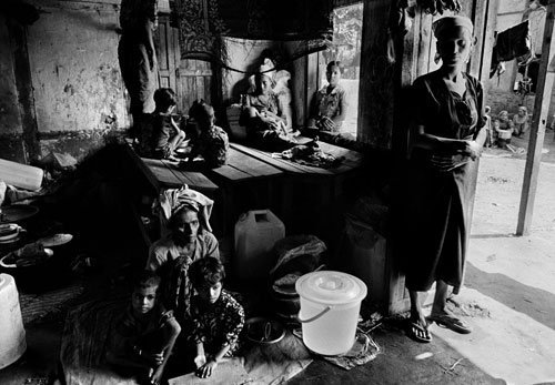 “Life here is very … not so happy,” U Kyaw Hla Aung said wryly. A lawyer and former court clerk who ran for parliament in the 1980s, he is probably the best educated and wealthiest Rohingya here, the luckiest. The nature of his luck, then, is that he can afford to pay the bribes and sureties required to leave the area every now and then to travel to Yangon for medical treatment; he meets with UN officials and diplomats who pop in and out of the camps on brief “fact-finding” missions; and he sits and waits on a plastic chair in a tiny wooden house, rather than on a stool in a tea shop or a muddy stoop.