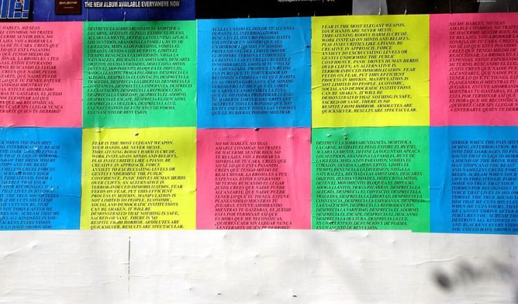 Holzer’s text-based work is designed for sloganeering. You can buy versions of the shirt I got from a variety of online retailers: printed on demand from Amazon, a US$205 Off-White™ re-release of Virgil Abloh and Jenny Holzer’s collaboration to raise funds for Planned Parenthood, and one where the text is layered over a black-and-white skull graphic. The product listing doesn’t credit the illustrator or even Holzer. The web store’s meta description promises apparel from “the deepest cult and counterculture cuts”. Over 160 shirt designs are available in two colours.